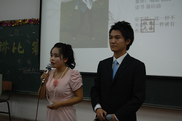 记者:王涛 摄影:付尧2012年9月25日下午六点,由国经社团部举办的中文演讲比赛准时在一教1309教室举行。党总支副书记赵钺老师、团委书记韩永慧老师、团委张瀚文老师,09级分团委副书记刘明玉学姐以及公司主席团成员...