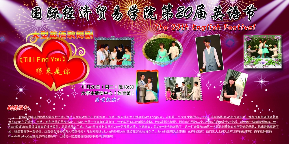 2012年11月20日晚6:30,装饰一新的校文体中心华灯璀璨,BG大游院第20届英语节在这里拉开帷幕。在各级领导的关怀和帮助下,在一代代国经人的共同努力下,国经英语节已成功走过了19个春夏秋冬。今天,又如约...