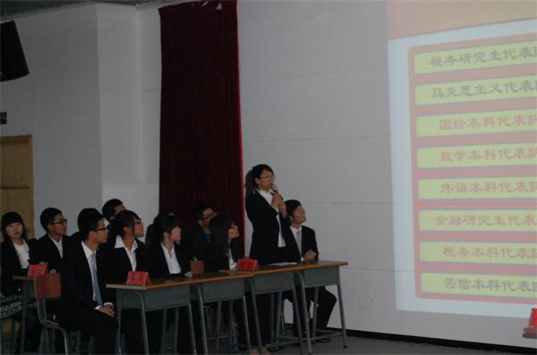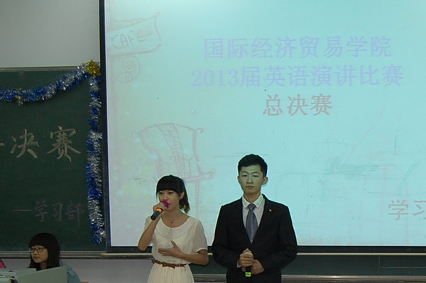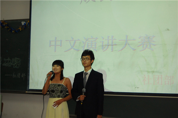 2013年9月26日晚6点,公司新生英语演讲大赛决赛在1115教室举行。到场的嘉宾有:外籍教师Bill,公司王基昱老师,党支部副书记赵钺老师,团委书记韩永慧老师,团委张瀚文老师, 2012级校英文演讲冠军缪也以及院员工会代...