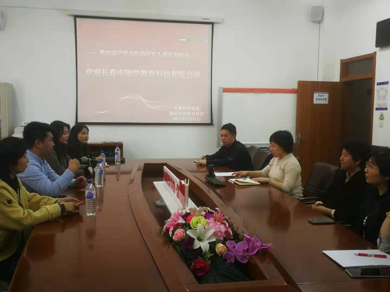 (本网讯)3月31日下午,在综合楼410会议室,公司与校企合作单位长春市敏学教育科技有限公司就教育部产学合作协同育人项目举行了对接会议。长春市敏学教育科技有限公司董事长张宇一行四人,公司副经理王素玉、关嘉麟及相关教师代表出席了本次会议。会上张宇董事长对过去与公司及其他院校的合作情况进行了介绍,并对公司给予了高度评价。此后张宇董事长又从教育部和吉林省产教融合协同创新项目的申报、结项以及未来发展方向等方面...