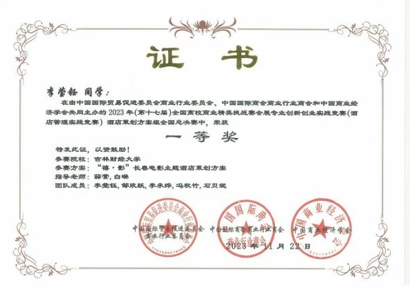 11月19日,2023年(新加坡)国际商务会展策划大赛中国地区选拔赛暨第十七届全国高校商业精英挑战赛会展创新创业实践竞赛全国总决赛酒店竞赛(以下简称为酒店竞赛精英赛)圆满落下帷幕。公司学子参赛作品《“禧·影”长春电影主题酒店策划方案》《理想后花园——安澜度假酒店设计策划》两项作品喜获全国一等奖,《“雪遇如家,肆享欢愉”如酒冰雪营销策划方案》《“萌森旅阁”酒店管理策划书》《“长春八景”文化主题酒店 》《多...