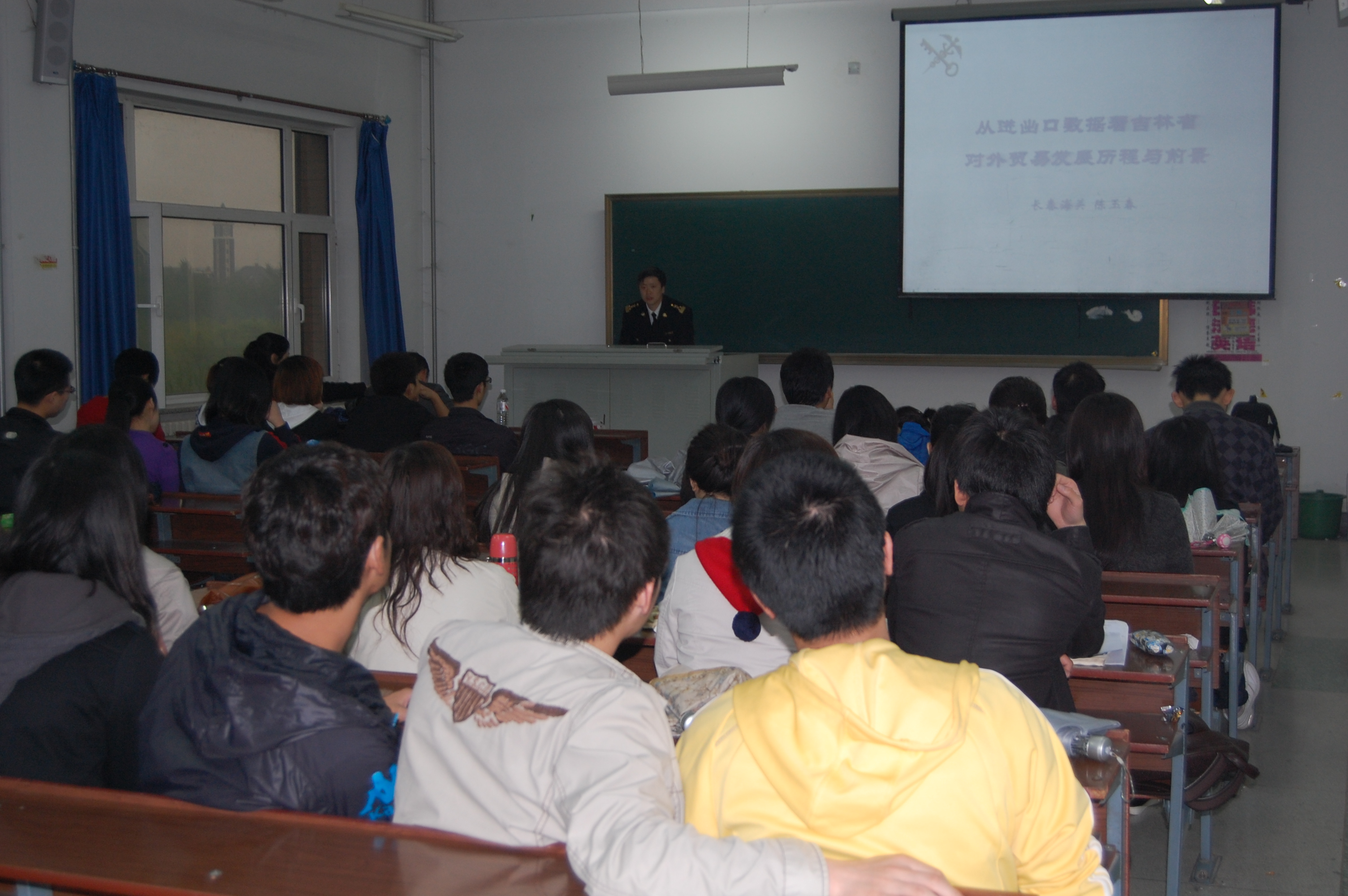 摄影:李文威 见习记者:梁威5月18日下午,公司特邀长春海关综合统计处处长、公司客座教授陈玉春在教学楼1220为公司本科生和研究生做了题为《从进出口数据看吉林省对外经济贸易的发展历程及前景》的学术报告。报...