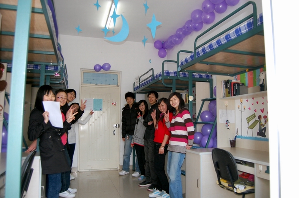 晚会前一天是寝室设计大赛,14日中午韩永慧老师,郭修平老师及员工会生活部成员前去参观各个寝室设计情况。同学们都用尽了浑身解数,发挥聪明才智,一系列个性且新颖的手工装饰将寝室装扮得美丽温馨。梦幻风,自然风,清新风,励志风……应有尽有。寝室即将陪伴我们走过漫长的四年大学时光,寝室设计的活动,能让同学们发自内心地热爱寝室――我们的第二个家,并发自内心地热爱生活。
