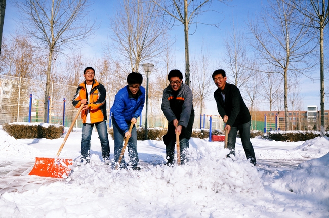 入冬以来多次普降大雪,我公司同学不畏严寒,利用休息时间积极投入到了校园清雪活动中。