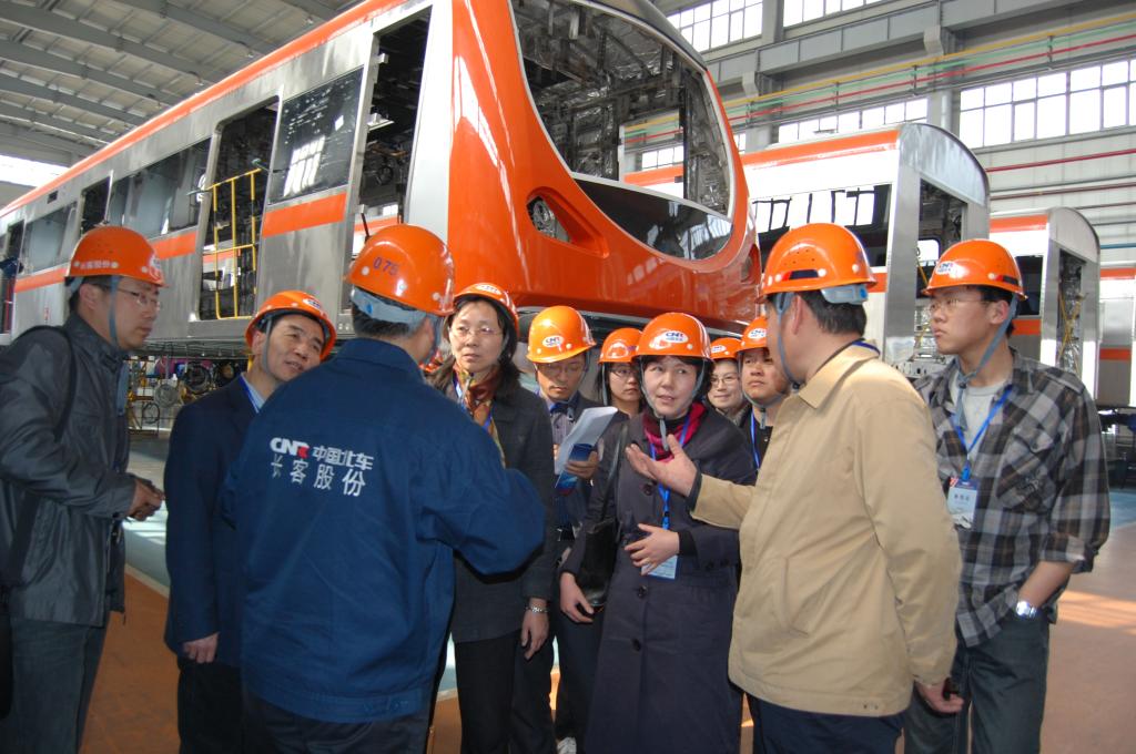 在整个参观过程中,公司党委宣传部部长兼企业文化部部长张天全程陪同并做了耐心细致的讲解,在张天部长的引领下,大家兴致勃勃地先后参观了老厂区的城铁、地铁车辆装配车间和新厂区更加现代化的高速铁路动车组车辆总装车间。张天部长介绍说,中国北车长客股份有限公司是我国轨道车辆出口的骨干企业,产品已出口到巴西、新西兰、澳大利亚、沙特、泰国等十几个国家和地区。在参观过程中,公司党委宣传部部长,机关党委书记张建华给予了长客企业文化高度评价,他说:“中国北车长客股份有限公司作为民族企业,真正诠释了伟大的中华民族精神,在中国共产党的领导下,不断地开拓创新,与时俱进,自强不息,勇往直前,相信在不远的将来,他将为中国乃至世界轨道客车事业的发展做出更大的贡献”。