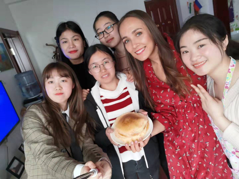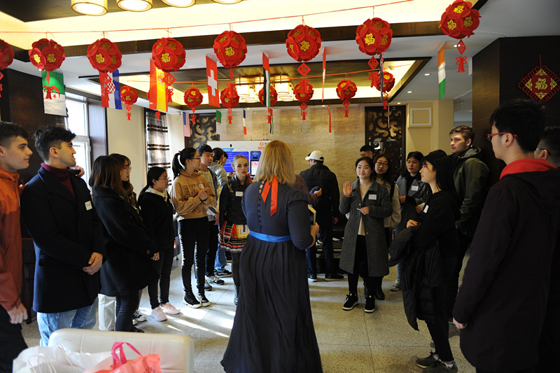 伴随着俄罗斯民族欢快悠扬的音乐,此次活动拉开了序幕。在外教玛利亚、妮娜及公司俄语教研室贾燕老师专业、幽默的讲解指导下,中外员工混合编组共同进行了“吃货接力、人体解题、钻树洞、男女生跳绳拔河”等一系列游戏竞技活动。国际合作与交流处处长王颖、副处长张冬春,公司党总支副书记赵钺为活动中的同学们加油喝彩。在外教妮娜的指导下,大家还一起跳起了欢快的俄罗斯民族舞蹈,掀起了活动的高潮。室外活动结束后,大家回到外事楼教室共进午餐,畅所欲言、相互交流,中外员工之间的友情也逐渐升温,整个教室充满着温馨与和谐的氛围。午餐过后,公司员工和职工分别献上了歌曲、舞蹈、吉他弹唱等精彩的节目,赢得了大家阵阵欢呼与喝彩。最后,在外教妮娜和玛利亚的示范、教授下,中外同学们亲手制作了稻草人玩偶和烤博饼。依依不舍的合影留念环节为此次送冬节庆祝活动画上了圆满的句号。