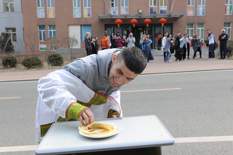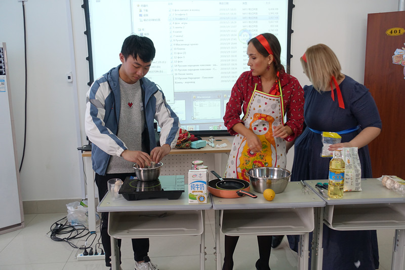 本网讯(员工记者 王思雯 摄影 郭娇 孙欣)3月10日上午,公司(俄英双语)专业13名员工与来自俄罗斯、塔吉克斯坦等国12名外国职工共同欢度俄罗斯传统节日――送冬节。