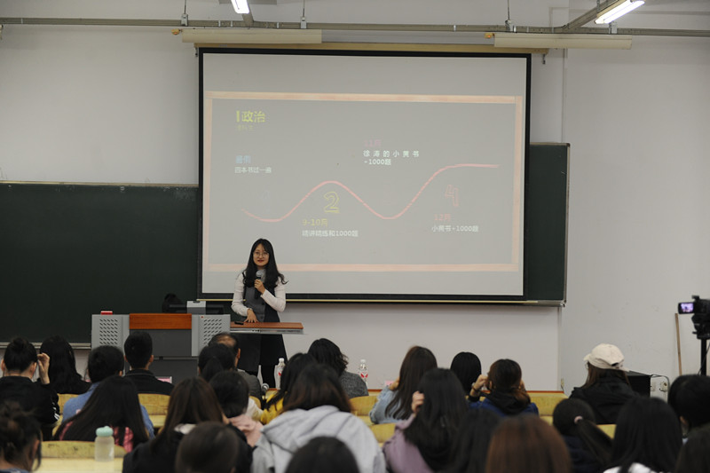 本次活动由“考研主题分享”、“留学主题分享”、“就业主题分享”三个环节构成。在时长一个半小时的分享会中,四位优秀的学长学姐为同学们分享了考研、留学和求职过程中的经验和技巧。