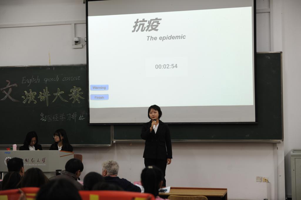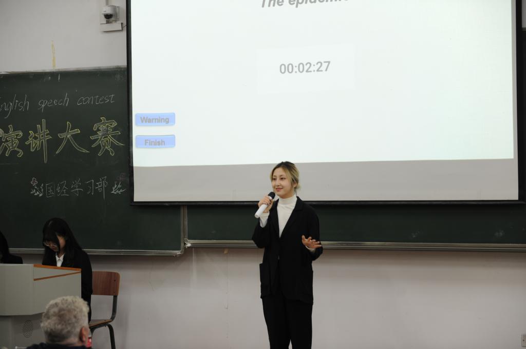 本网讯(员工记者 金育竹 摄影 张纭溥 金育竹)11月5日晚6点,公司2020级新生英文演讲比赛决赛在1409教室举办。到场评委及嘉宾有:国际经济教研室主任张智远副教授、国际贸易教研室王基昱副教授、公司团委书记遇言、外籍教师Sharron及大一全体同学。