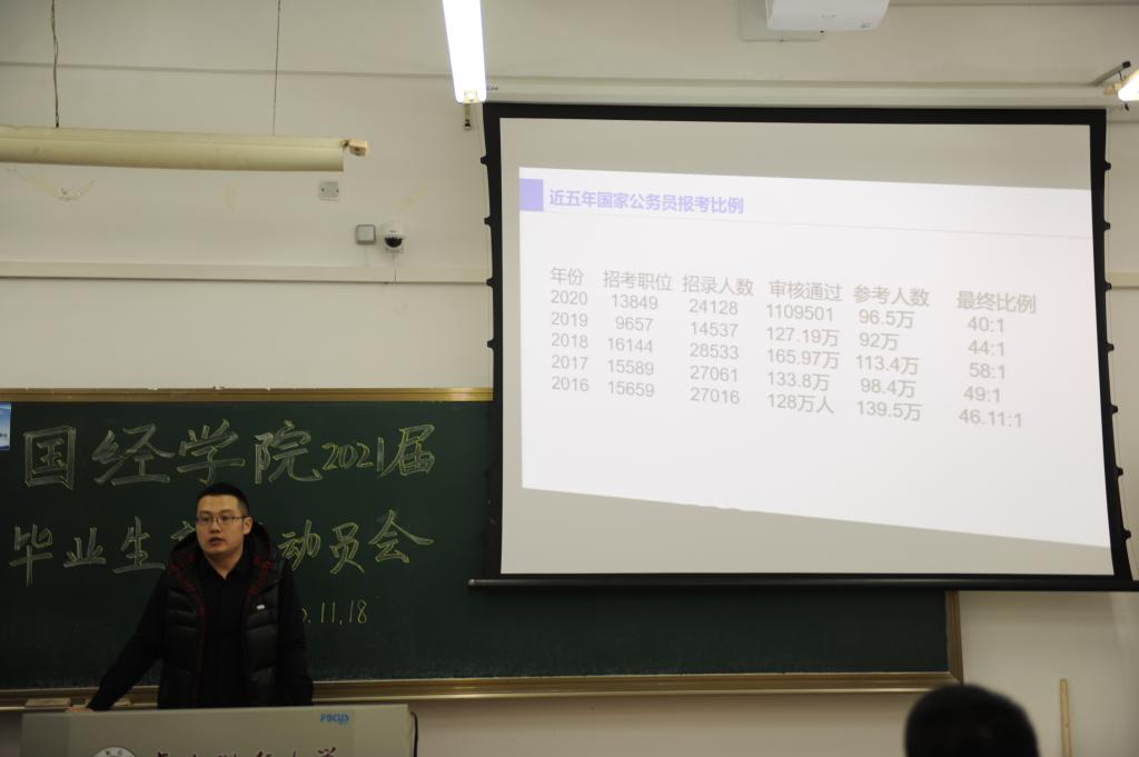动员会中,刘恩泽老师首先介绍和分析了公司2021届毕业生的就业和考研形势。刘老师分别针对考研、公务员、事业单位、校企合作、二学位和出国留学这六种毕业选择向毕业生们提出了建议并给予了相关指导。随着考研员工比例的逐年上升,叠加二战、三战考研群体,虽然2021年研究生将继续扩招,但计划增量主要投向了临床医学、公共卫生、集成电路、人工智能等专业,财经类毕业生考研形势依然严峻,考研压力依然很大。刘恩泽老师在向准备考研的同学们表达祝福的同时,也建议同学多角度做好毕业选择,鼓励本届毕业生抓住各种机会,通过校招等各种招聘平台在毕业季找到自己理想的工作。