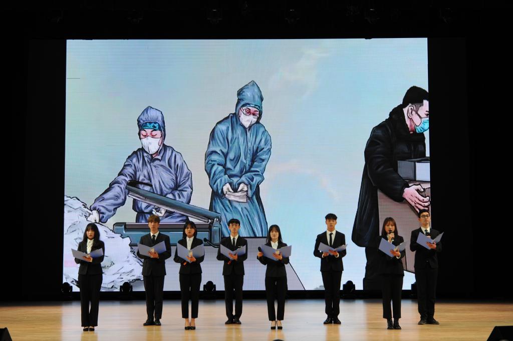 此次迎新晚会暨歌手大赛以“用心前行,筑梦远航”为主题。开场舞《power+pretty savage》以青春洋溢、活力四射的舞姿瞬间燃爆全场,同学们的掌声和欢呼声此起彼伏!接下来激动人心的歌手大赛中,十位经历重重考验从60多位竞争者中脱颖而出的选手来到了决赛的舞台,尽情舒展歌喉,展现魅力。第一轮独唱环节前五位选手演唱的《Live while we are young》《勇气》《第一次》《被驯服的象》和《好久不见》让我们穿梭于青春,孤独,悸动,奇幻,难忘的情感之中。接下来,20级研究生同学的劲舞又一次将场内氛围推向高潮,尽显青春的活力与激情。之后五位选手的独唱使观众在歌声中领略了人生的酸甜苦辣,感受着生命的平凡和伟大。接着,由社团部成员带来的原创诗朗诵《疫情下的中国脊梁》带我们再次回到了这场全民抗疫大战,唤起了每个人曾经的记忆,触动了每个人的心弦。是无数“逆行”勇士用实际行动彰显青春责任,用奉献守护了春暖花开。在第二轮的组队演唱中,五组选手配合默契,发挥出色,再次呈现了一场视听盛宴。