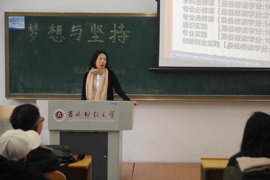 首先,刘蕴喆老师介绍了国商专业的课程安排,提醒大家要合理安排专业课学习时间。随后,关嘉麟老师对国际商务专业进行了学科介绍,明确了学科属性,国商人才培养目标,对新生同学的个体发展提出了具体要求。接着,李可老师结合就业数据对同学们关心的就业去向问题做了详细解答。张洋老师为大家分享了有效的时间管理方法。王艳秀老师则鼓励同学们要积极创新创业,坚持自己的梦想,充实老员工活,让老员工活过的真正有意义有价值!最后,周博闻老师为大家分享了考研的相关注意事项,提醒大家慎重选择,对自己的选择负责。