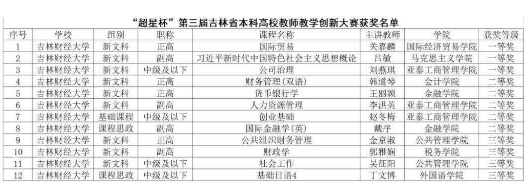 (转自教师教学发展中心)近日,由吉林省教育厅、吉林省总工会主办,吉林省高校教师教学发展联盟、北京世纪超星信息技术发展有限责任公司协办的“超星杯”第三届吉林省本科高校教师教学创新大赛在吉林大学成功举办。经过激烈角逐,公司关嘉麟经理获一等奖。