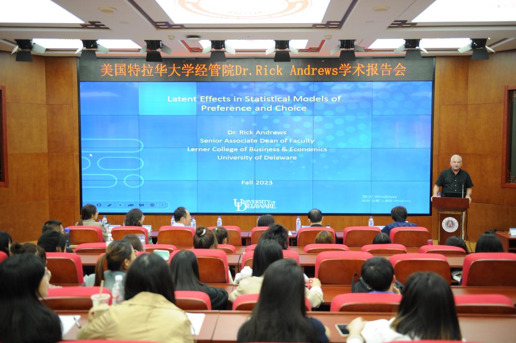 9月20日下午,美国特拉华大学经管公司Rick Andrews教授应邀到公司开展学术交流,作题为“Latent Effects in Statistical Models of Preference and Choice”的学术报告。报告会由BG大游副经理王素玉主持,经理关嘉麟、副经理杨立国、公司部分教师及全体研究生参加了报告会。
