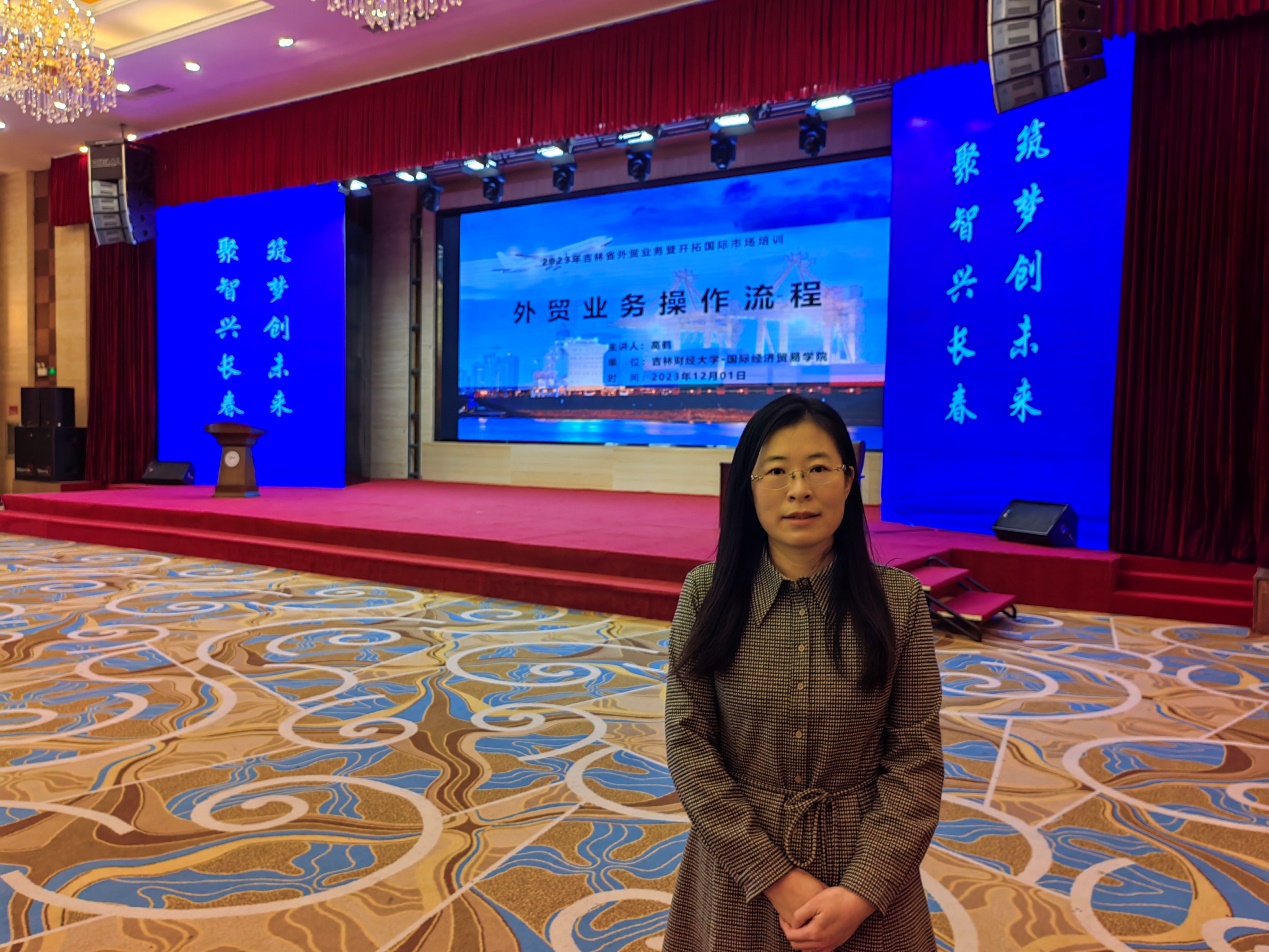 2023年12月1日下午,公司跨境电商教研室高鹤副教授受吉林省商务厅邀请,面向来自全省各地的外贸企业和即将从事外贸业务企业的200余位相关负责人,做了一场外贸业务操作流程的专题讲座。
