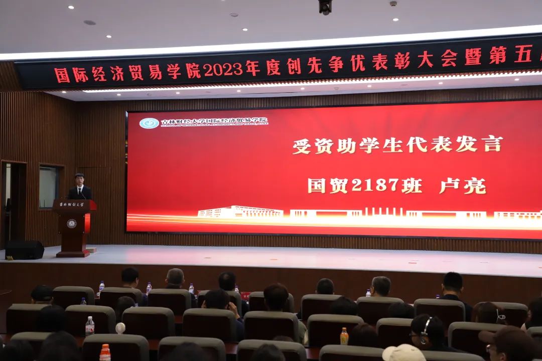 国贸2187班卢亮作为获奖员工代表在颁奖典礼上发言。他向设立“恒强助学金”的员工和所有老师、同学表达了感谢,恒强助学金不仅减轻了他们的经济负担,也激励着他们更加努力学习,回馈社会。他承诺未来会将所学知识和技能用于社会发展,并回馈母校,并怀着感恩之心启航新的征程。