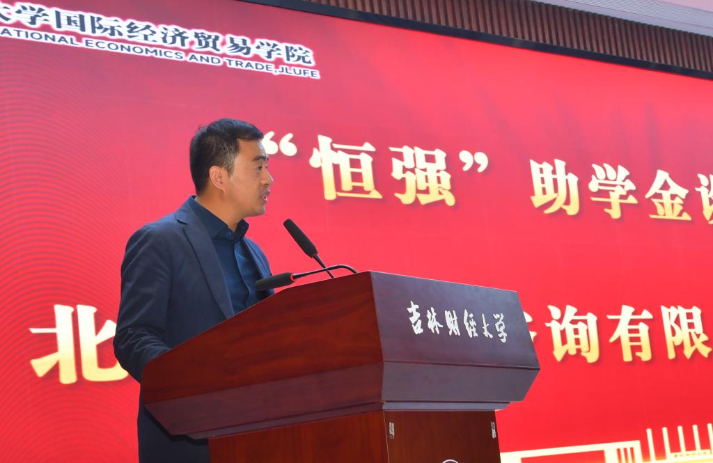 宋晓恒先生代表设立方致辞,他感谢曾经公司的老师们无微不至的关心和培养,感谢五年来各位员工们的坚守,也感谢母校和公司对于“恒强助学金”的大力支持。他希望通过设立恒强助学金,让家庭贫困的学弟学妹也拥有接触优质教育的权利,拥有实现自己梦想的权利。最后他表示“资助当下,智助未来”作为“恒强”助学金的愿景,不仅是资助学弟学妹们当下完成学业,更是鼓励他们做有担当,有责任感,有公益心的社会人才,达到通过教育的力量改变社会的目的。