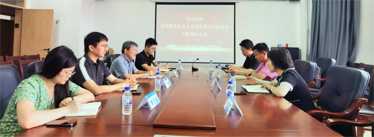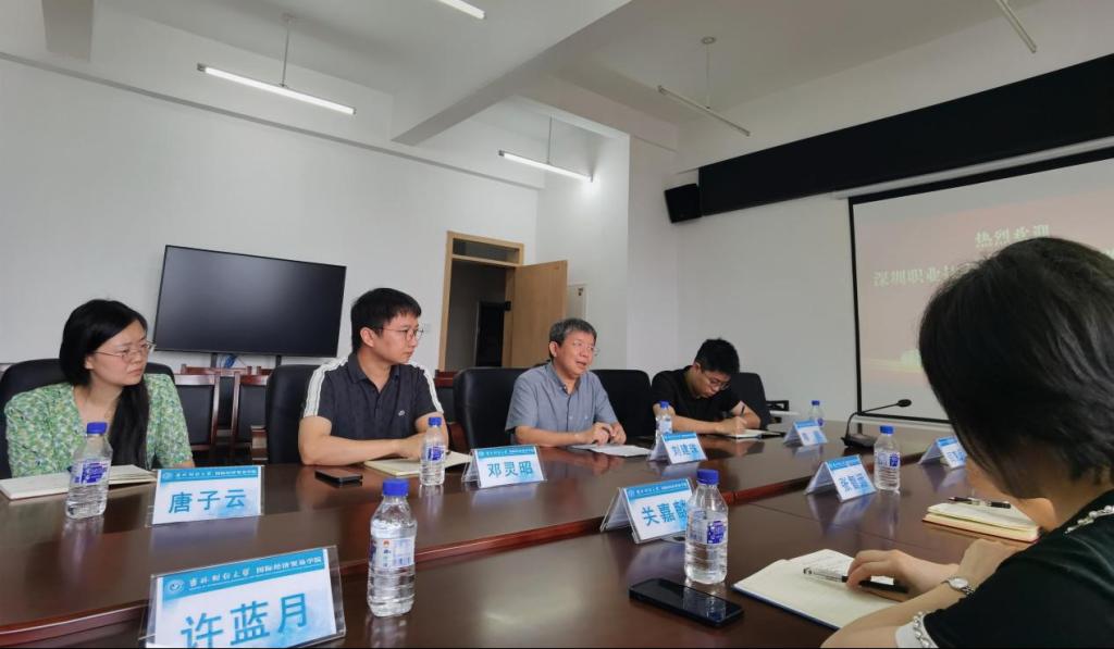 8月15日,深圳职业技术大学商务外语公司副经理刘建珠、跨境电商专业主任邓灵昭及教师代表一行四人来公司调研交流。公司经理关嘉麟、跨境电子商务专业教研室主任闫克远及教师代表参与座谈交流。