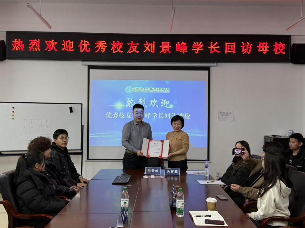 关嘉麟对刘景峰员工的返校分享表示了热烈欢迎,对其持续关心并支持公司工作致以真诚的谢意。她勉励在场师生以优秀员工为榜样,不忘初心、践行校训,心系母校,在互学互鉴互助中走好人生之路。随后,关嘉麟为刘景峰颁发了行业导师聘书。