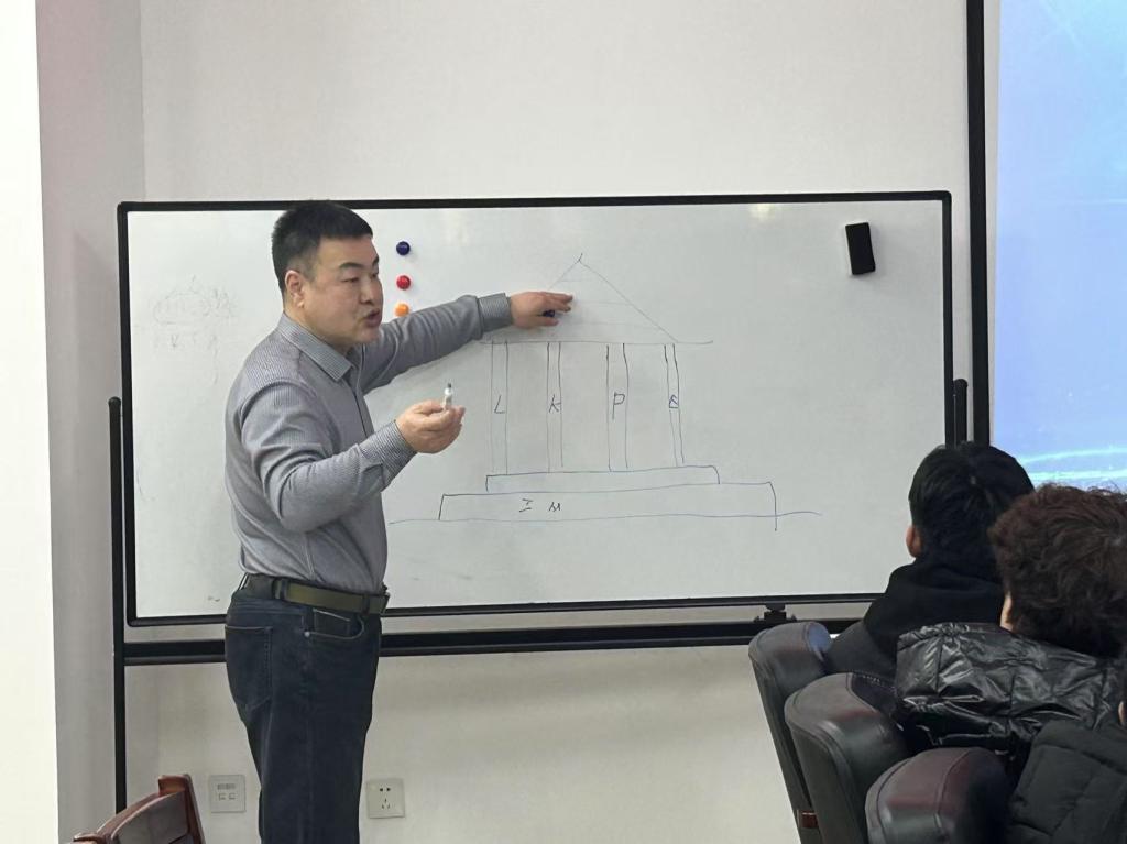 座谈会上,刘景峰以“大学未来四年你应该具备怎样的能力”开篇,寄语新生“以学习力与互助精神开拓未来”。作为知名外贸出口企业创始人,他以“六台轰鸣的机器”为引,讲述如何运用在校培养的思考力、解决问题能力及综合学习能力,透过机器轰鸣的表象,他揭示了背后的破局智慧,生动诠释了大学培养的核心能力在工作实践中的关键作用。随后,刘景峰通过互动形式讲解金字塔模型,以“(L)语言能力、(K)专业知识、(P)产品认知、(E)实践经验”四大支柱为员工们指明发展路径,并以自身外贸经历为例,强调了语言赋能的重要性,鼓励员工积累词汇、提升英语综合素质和能力。