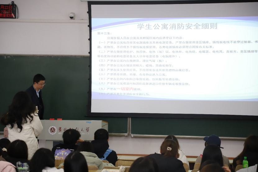 校园安全工作会议上,王萌老师为大家详细解读“bg大游集团官网校园治安防火安全管理制度”并结合公司部署作出具体安排。他强调班干部、寝室长要负起责任,禁止在寝室使用违规电器,禁止在一切公共场合吸烟,把隐患消灭在萌芽状态,最大限度保障员工安全。寝室长是寝室安全防火的第一责任人,因此更要加强要求,每日的网格化上报中除汇报返校情况外还要增加与寝室安全防火检查相关的汇报内容。
