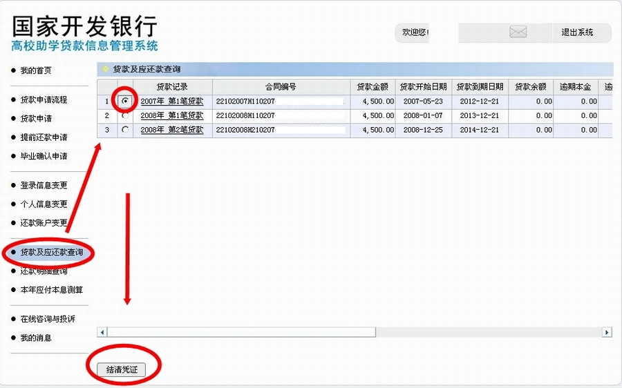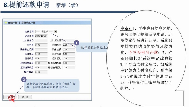正常申请日期为:每月1日-10日。每年的1月份-10月份进行此项工作,11月份、12月份银行不受理提前还贷。 于当月15日之前将资金存入还款账户。还款结果请于下月月登录系统初进行查询。 系统左侧“贷款及应还款查询”,选中贷款记录,点击下方“结清凭证”。生成凭证。(具体见下方图解)