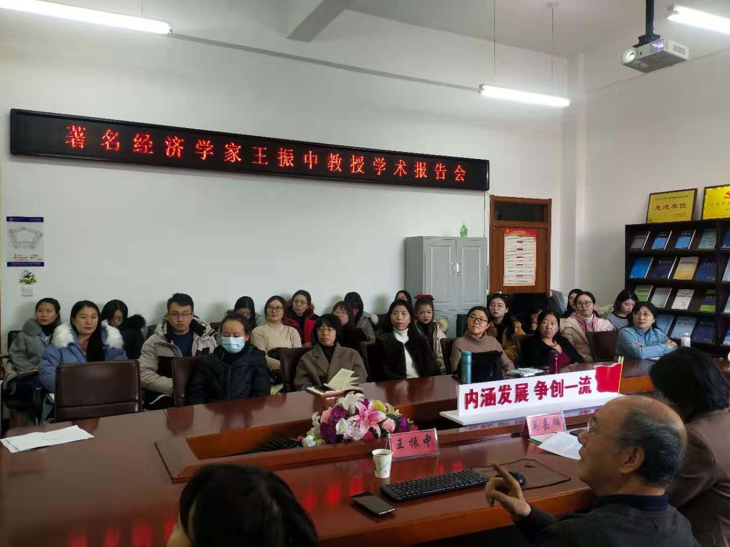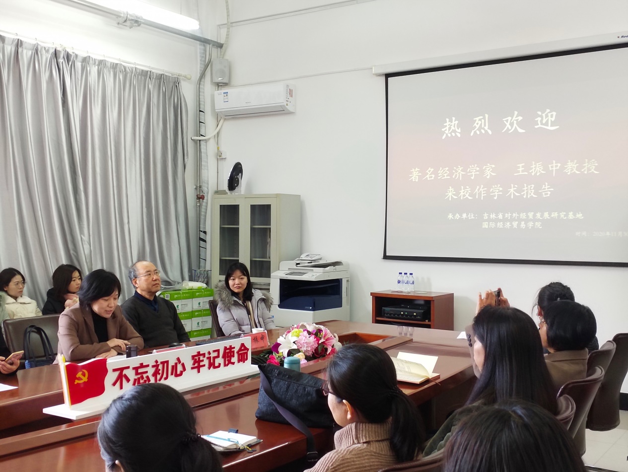 本网讯 11月30日上午,中国社会科公司经济研究所原副所长、博士生导师、国务院特殊津贴获得者、中国资本论研究会副会长王振中教授应邀来吉林省对外经贸发展研究基地作题为“实行更高水平开放、增强双循环联动效应”的学术报告。研究基地成员和公司研究生参加了此次学术报告会。报告会由关嘉麟副经理主持。