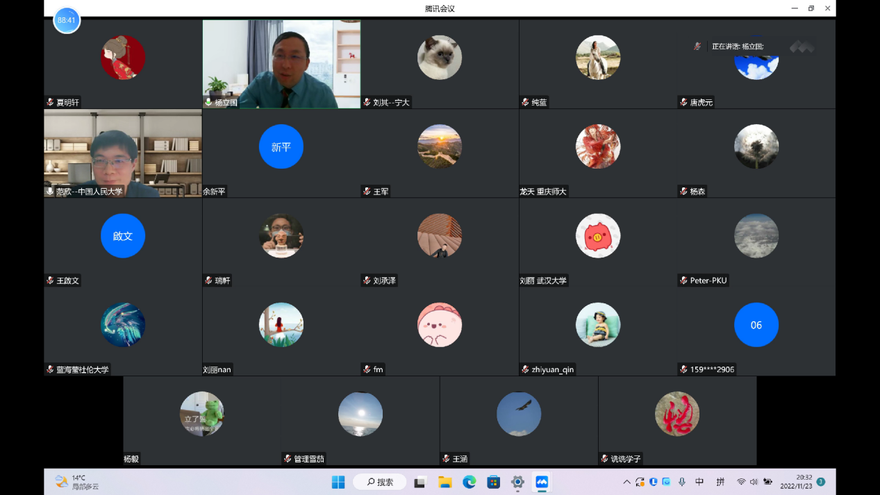 为深入学习贯彻落实党的二十大精神,11月23日晚,应公司邀请,中国人民大学经济公司范欣副教授通过腾讯会议对公司师生作了题为“中国式现代化的内在逻辑及其实现路径”的学术报告。本次报告会由国际贸易教研室主任杨立国副教授主持,国经公司部分师生参加了本次报告会。