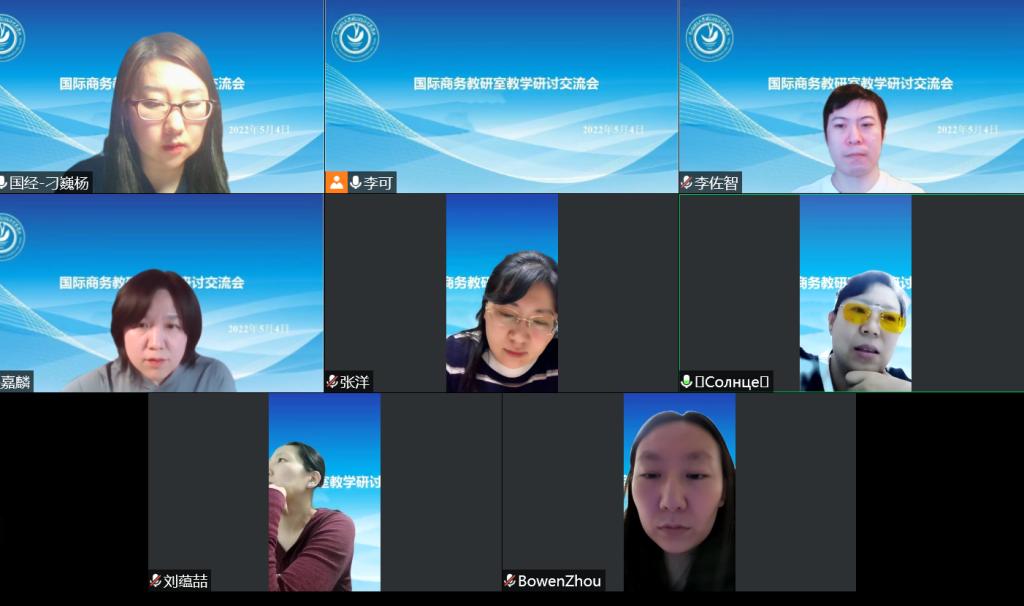 54日晚,国际商务教研室通过腾讯会议平台召开了2021-2022年度第二学期国际商务教研室教学研讨交流会。会议由教研室主任刁巍杨主持,教研室全体教师参会。