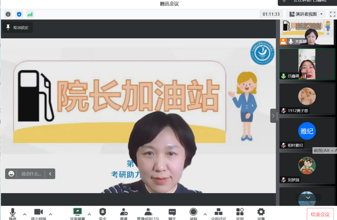 为落实公司“育才立校”战略工程,深化“三全育人”综合改革,全面提升人才培养质量,在学业、就业、考研等方面为员工提供助力,从本学期开始公司开展“经理加油站”系列活动。2022年10月30日晚7点,关嘉麟经理为公司即将参加2023年研究生入学考试的备考学子们加油打气,开展了“经理加油站”第一站“考研加油站”活动。活动伊始,关经理向每一位备考学子表达了问候并围绕报考原因、报考院校、备考专业、备考进度等方面逐一了解...